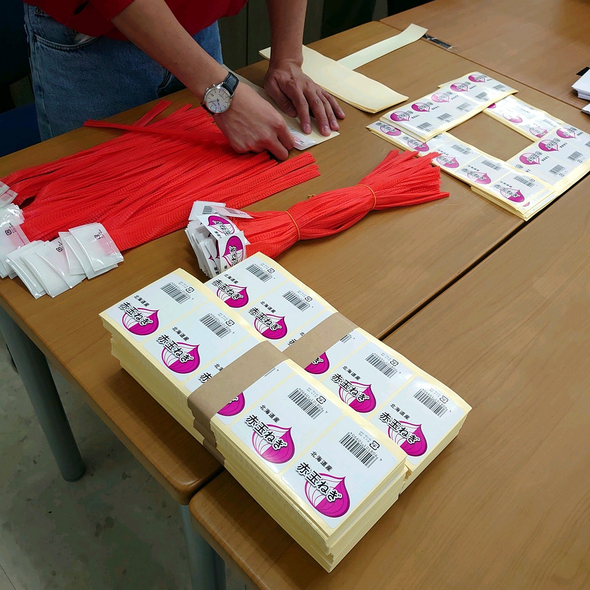 玉ねぎや節分の豆のシール貼りも、納期がそう遠くないため、地味~に大忙しです。