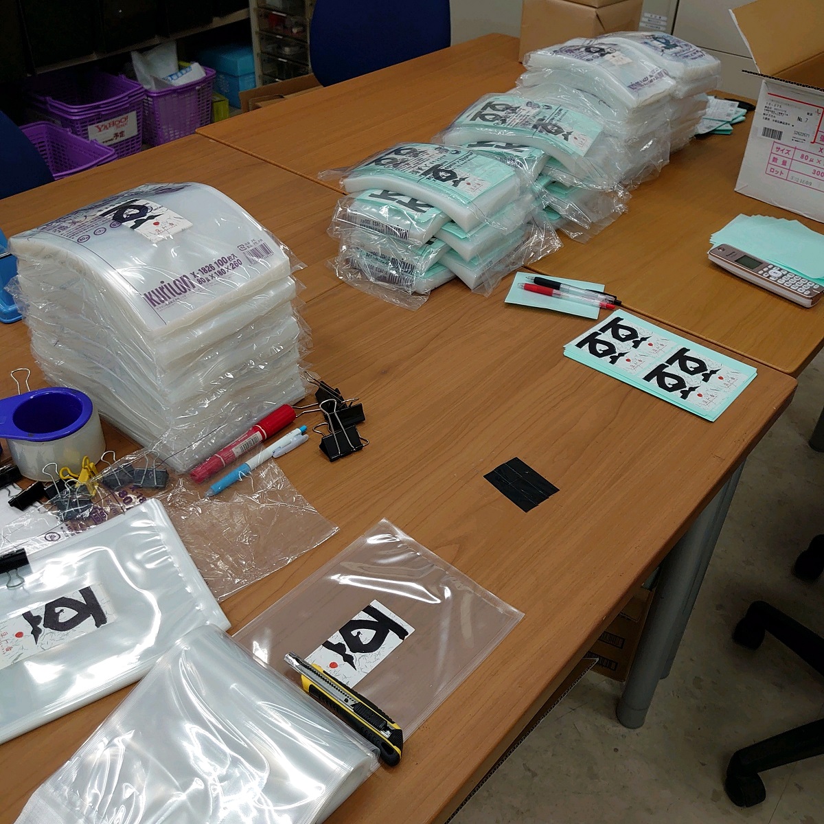 残りの2人はDMに封入するちらしの丁合、折り、封入作業。